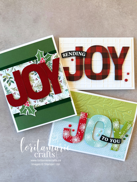 It's all about adding JOY to your Christmas cards this week — with three fun techniques for the Party Alphabet Dies! You can emboss them, add texture, or use your Designer Series Paper to make them fun & festive.