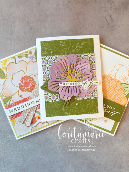 I created 3 cards using the upcoming Lovely & Beautiful Suite, showing different ways to mix and match the Lovely & Beautiful DSP and the Simply