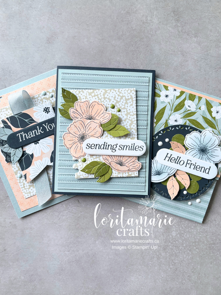 The Lovely Blossoms Suite from the new January Online Exclusives is a fabulous collection of coordinating products to create with. I really enjoyed making the 3 cards I shared with you yesterday as this week's Class To Go. I'd love it if you craft along with the video or purchase some of the products that I used and enjoy