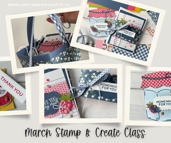 This month’s Stamp & Create Class features a Berry Basket Gift Set: create a berry-style basket (perfect for holding a little treat or even a real jam jar!), a special coordinating card, a set of 3 matching full-sized